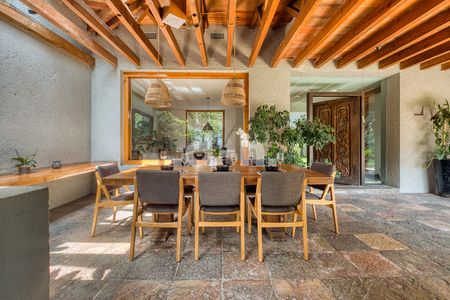 Entre ambas, se encuentra una terraza encantadora con comedor al aire libre y área de estar, rodeada de un jardín con vegetación madura y un árbol que brinda sombra, frescura y una sensación única de bienestar. Casa Principal