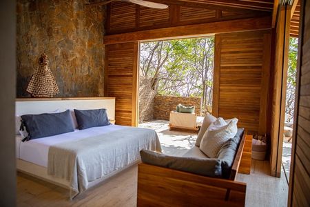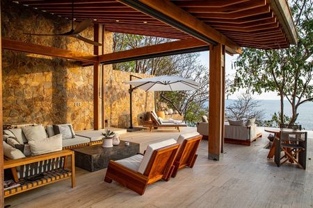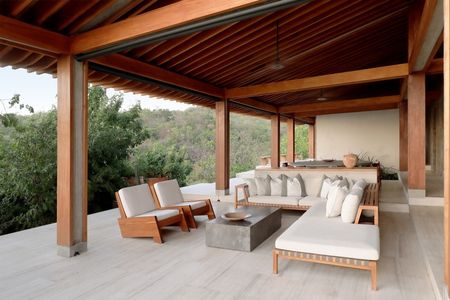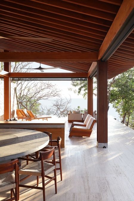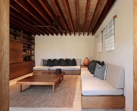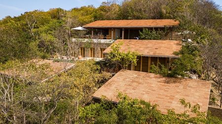 Con un área construida de 700m y finalizada en el año 2021, la residencia cuenta con 4 recámaras y 4.5 baños, distribuidos en cuatro pabellones independientes que se adaptan a la topografía y vegetación existente, demostrando un profundo respeto por el medio ambiente. Los materiales utilizados en su construcción y diseño interior, incluyendo concreto, madera tropical, piedra del sitio, y textiles adaptados, reflejan la riqueza regional y garantizan una integración sutil en el paisaje.La organización espacial desde áreas comunes hasta habitaciones privadas, y la decisión de mantener tres caras de cada módulo abiertas, fomentan una relación directa y continua con el exterior, permitiendo a los habitantes vivir la naturaleza de manera íntima. Esta filosofía de diseño coloca al contexto natural como el verdadero protagonista, convirtiendo la experiencia residencial en una extensión directa de la casa.Además, la orientación estratégica de los pabellones y el diseño inteligente de las cubiertas buscan proteger los interiores del sol directo y promover la ventilación natural, contribuyendo a la eficiencia energética y al confort térmico de la vivienda.