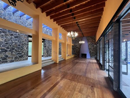 La casa cuenta con 4 amplias recámaras, cada una con baño propio y pisos de madera. La recámara principal es una suite espectacular que incluye un patio privado, chimenea, un tapanco que funciona como taller, un baño con jacuzzi y vestidor, garantizando privacidad y comodidad absoluta.