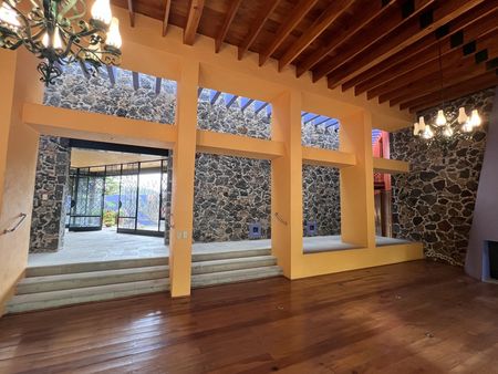Ubicada en una esquina privilegiada a solo unas cuadras del centro de Tepoztlán, esta espectacular casa de piedra destaca por su diseño arquitectónico único y sus impresionantes vistas panorámicas a los cerros. Con un terreno de 4,226 m² y una construcción de 800 m², esta propiedad ofrece un equilibrio perfecto entre naturaleza, amplitud y confort.