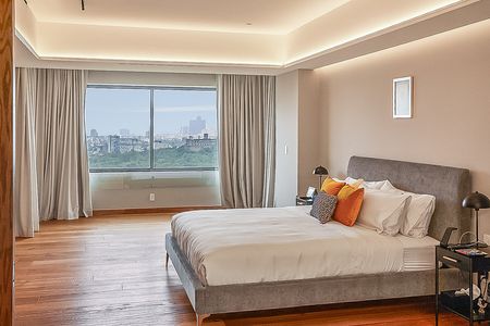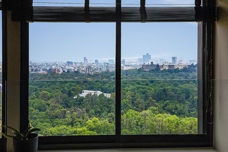 El departamento incluye dos amplias recámaras, siendo la principal una suite con un gran baño y un vestidor. Las áreas de sala y comedor ofrecen vistas espectaculares al Bosque de Chapultepec y al icónico Castillo de Chapultepec.
