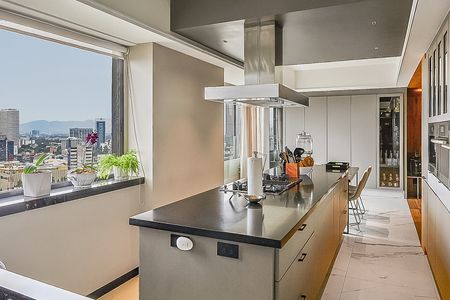Este impresionante departamento, ubicado en un solo piso en una de las zonas más exclusivas de la Ciudad de México, ofrece lo último en vida de lujo. Completamente remodelado hace cuatro años por la reconocida firma arquitectónica Chain-Siman, el departamento cuenta con elegantes pisos de madera y una cocina completamente equipada con electrodomésticos Miele.